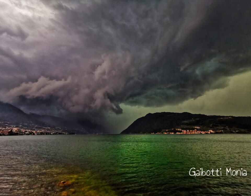 Zondagavond kort na 19.00 uur kleurde de hemel boven ons en boven het meer dreigend zwart. Een plotselinge en hevige storm trok over het gebied, inclusief het Iseomeer, met krachtige windstoten, hagelbuien en stortregen. Binnen enkele minuten veranderde het landschap: bomen werden ontworteld, takken braken af en vielen op wegen, hekken en zelfs verschillende daken moesten eraan geloven.